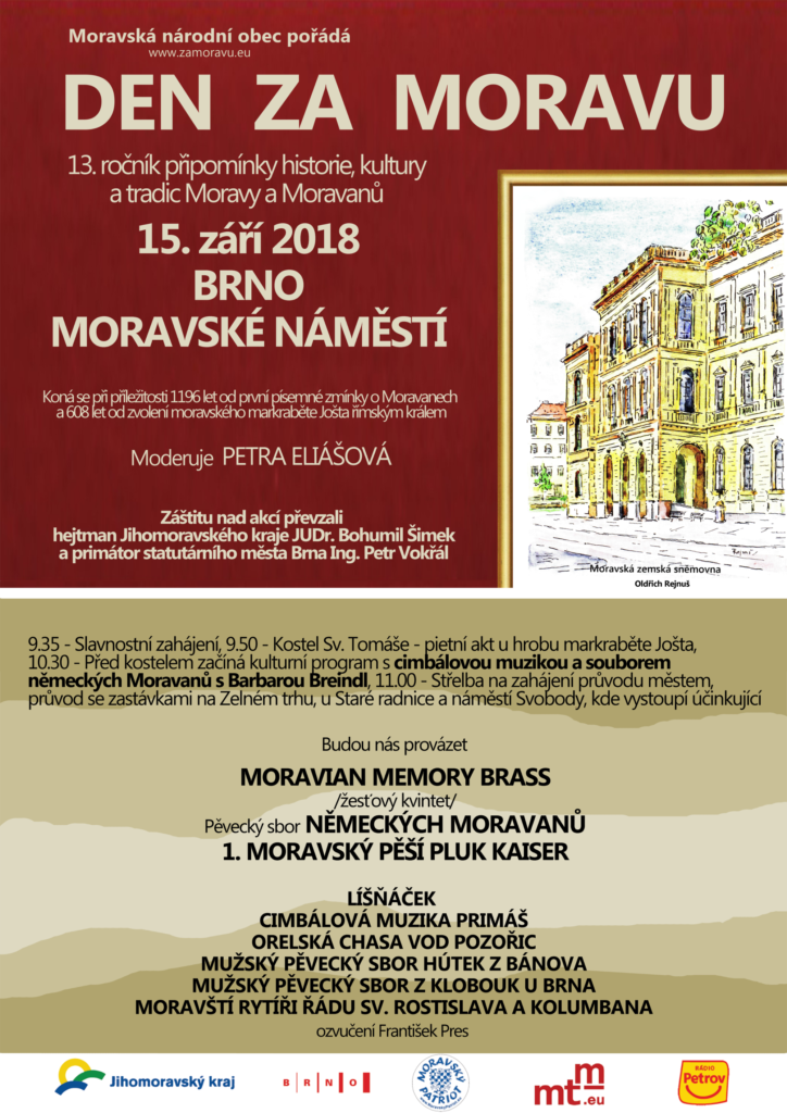 « Všechny Akce akce již proběhla. BRNO – Den za Moravu 15. září 2018 od 9:30 « PLUMLOV-PROSTĚJOV – Putování Moravou BRNO – výročí odhalení památníku míru » Brněnský Den za Moravu (13. ročník) se letos koná v sobotu 15. září. + Kalendář Google+ Přidat do iCalendar Podrobnosti Datum: 15. září 2018 Čas: 9:30